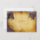 Fundo de papel elegante e rústico com bordas onduladas sobre fundo roxo profundo. Vintage púrpura e vinhas de uva azul. Personalize para criar o RSVP perfeito para o casamento do seu lugar de adegas. Convites, lista de vinhos e cartões de menu também disponíveis neste design.