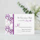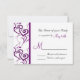 O convite elegante para o casamento tem uma fronteira de videiras florais roxas com corações duplos entrelaçados ao lado esquerdo do convite. A fonte da data de RSVP é a mesma cor que os corações e espirros. Basta adicionar sua data de RSVP ao cartão. Se você precisar alterar o tamanho ou a fonte do texto, poderá usar o botão "Personalizar" para mover as coisas, redimensionar o texto e personalizá-lo completamente. Caso contrário, se você gosta do layout e da fonte como ele é, então apenas insira seus detalhes de casamento nos pontos de modelo. Este Cartão RSVP Corresponde aos convites de casamento: