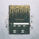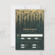 Uma ilustração esbranquiçada de videiras pairadas revestidas de ouro (efeito digital, não folha real!) sobre uma cintilante cor verde-d-água, cintilante com luzes de fada e poeira mágica, decora este cartão RSVP de verão do casamento outono de inverno com um tema de floresta encantado. Um cartão de resposta elegante e moderno para um casamento de conto de fadas. Perfeito para noivas que amam o cenário florestal de conto de fadas, o tema da floresta de fadas ou do jardim de fadas e esmeralda verde, mauve e ouro.