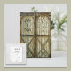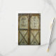 Duas portas rústicas do celeiro do país são apresentadas nesta design rustica ocidental. Os painéis das portas têm os nomes dos casais e a frase, RSVP. Os painéis cruzados na parte inferior das portas articuladas possuem uma corda ocidental com nó de solteiro. Este design coordena-se com o convite de casamento correspondente da Porta do Barn: