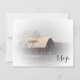 Personalize a charmosa placa de resposta RSVP de Casamento de Neve Coberta por Neve de inverno com a data de resposta de casamento de dezembro, janeiro ou fevereiro. Esta placa rústica do estilo r.s.v.p., informal e elegante, apresenta uma fotografia de fazenda cênica e tênue de um celeiro vermelho coberto de neve branca.