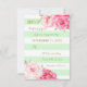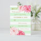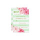 Cartões RSVP de Casamento com padrão verde e listras brancas de menta pastel clara, flores cor-de-água rosa e rosa-brasa e texto com letra dourado.