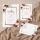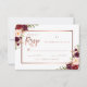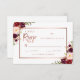 Linda burgundy vermelha floral cor d'água floral design de casamento rsvp horizontal com faux rosa dourado fina estrutura de linha e rosa dourado "rsvp" escrita à mão. O Convite de Casamento Correspondente está disponível na loja. Personalize com o texto do rsvp do casamento usando o menu editar.