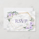Moderno e moderno, este bonito convite de casamento, RSVP design, apresenta uma falsa geometria dourada embelezada com rosas e flores roxas de lavanda lilás, sobre uma textura falsa de mármore branco. Os envelopes brancos do plano estão incluídos. Para remover as escolhas de refeições, criamos um vídeo de como fazer para você aqui: https://youtu.be/ZGpeldQgxoE Parte de um jogo de casamento correspondente. Convidados Elegantes de Direitos Autorais. Todos os direitos reservados.