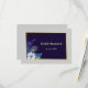 Este cartão de resposta do casamento combina com os Dourados Convites Forais de Boho Azul na nossa loja. Ele apresenta seu texto personalizado em dourado claro em um campo azul-marinho e delimitado dentro de um fino quadro de ouro brilhante. Um embelezamento floral azul, incluindo uma pena de pavão de padrão de estilo boho, decora a parte inferior esquerda. Tudo é colocado sobre uma elegante cinza prateada. A parte traseira do cartão tem os campos de texto personalizados em azul escuro em um plano de fundo prateado correspondente para facilitar a marcação do respondente.