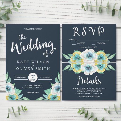 RSVP de Casamento Floral de Cor Azul
