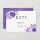 Cartões RSVP de Casamentos Flóricos de Aquarela com cor ultra-violeta de 2018 com tons roxos e verdes de sábio. As flores incluem hidrangea, lavanda, peonias e rosas.