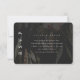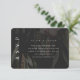 Este belo cartão de resposta de casamento inclui um lugar para o seu código QR para que os convidados possam facilmente consultar o seu site de casamento. A frente do cartão preto apresenta um dramático moody floral impressão com tipografia clássica.