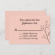Cartão de resposta RSVP de casamento elegante feito em uma pincel de pêssego, com um simples desenho floral preto, no lado direito. Personalize o texto preto personalizado para sua celebração de casamento. Os produtos correspondentes estão disponíveis.