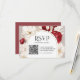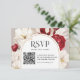 Uma placa de RSVP moderna projetada com elegância em mente, com um código de QR digitalizável para respostas rápidas e fáceis de hóspedes. Acentuado com rosas vermelhas rubis e florais brancos para corresponder ao seu conjunto de convites.