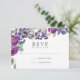 Cartão rsvp de casamento floral violeta e ameixa elegante com tons de verde-sábio projetados para serem rápida e facilmente personalizados de acordo com as especificações do seu evento.