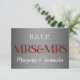Convite de casamento elegante coordenando RSVP para o casal lésbico. Adicione nomes à frente, edite RSVP por data no verso. Feito num elegante impressão prateado. As noivas também podem adicionar envelopes coordenadores e postagem se escolherem nossos convites de casamento correspondentes.