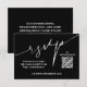 Esses cartões de inclusão de casamento modernos em preto e branco são uma maneira fácil para seus convidados responderem no site do seu casamento. Inclua seu próprio código QR e o site do seu casamento na frente e informações adicionais no verso (exclua nosso texto para deixar o verso em branco). As cores podem ser alteradas com nossas ferramentas de edição. Itens CORRESPONDENTES em nossa coleção.