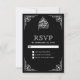 Cartão RSVP Elegante com uma elegante fronteira ornamentado branca e "Bismillah" na caligrafia árabe contra fundo preto.