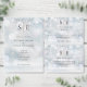 Essa placa de RSVP chic pode ser personalizada com suas iniciais de monograma e informações de RSVP especiais em um fundo de floco de neve de inverno. Projetado por Thisnotme©