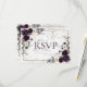 Moderna e moderna, este convite de casamento RSVP design apresenta cor d'água eucalipto verde e plum roxo arranjos florais, com poeira falsa de ouro, sobre uma textura falsa de mármore branco, com "RSVP" em uma cor de ameixa correspondente. As opções modernas de refeições estão incluídas no verso. Para remover as escolhas de refeições, criamos um vídeo de como fazer para você aqui: https://youtu.be/ZGpeldQgxoE Parte de um jogo de casamento correspondente. Envelopes brancos simples incluídos (etiquetas de endereço de retorno correspondentes disponíveis na coleção). Convidados Elegantes de Direitos Autorais. Todos os direitos reservados.