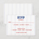 Cartão de caixa RSVP de baseball branco e azul vermelho / amassado de softball com pinstripes. Personalize-o com os detalhes do evento. Excelente para fãs esportivos.