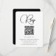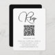 Este moderno cartão de resposta do casamento apresenta um lugar para o seu código QR para que os convidados possam facilmente consultar o seu site de casamento. A frente apresenta um design preto e branco simples e limpo com a tipografia do roteiro de letras. A parte de trás mínima é preto sólido.