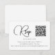 Este moderno cartão de resposta do casamento apresenta um lugar para o seu código QR para que os convidados possam facilmente consultar o seu site de casamento. A frente apresenta um design preto e branco simples e limpo com a tipografia do roteiro de letras. A parte de trás mínima é branca sólida.