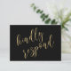 Escrito elegante em ouro falso sobre fundo preto é uma adição espantosa ao seu casamento temático preto e ouro.