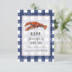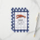 Uma r.s.v.p. de náutica russa inspirou o casamento, apresentando uma ilustração de uma lagosta sobre um fundo de gingham branco e azul-meteoros.