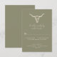 Simples Cartão RSVP de Casamento Russo de Cabeça de Vaca - Um simples cartão de resposta de casamento coordenado com a tipografia moderna e escrita para um sentimento minimalista. O cartão de resposta apresenta um crânio de vaca ao estilo de cowboy rústico em creme de sobremesa com fundo verde de cacto. A placa RSVP faz parte de uma coleção e todos os elementos e cores podem ser facilmente alterados para se coordenar com o seu casamento ocidental. O cartão de resposta inclui a escolha da refeição.