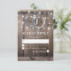 Cartões de resposta para casamentos de cantos do país, com fundo de celeiro de madeira rústico, ferraduras de cordas, luzes cintilantes de cordas e um modelo de rsvp moderno.
