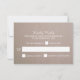 Estas cartas de RSVP são perfeitas para qualquer casal planejando um casamento romântico por país. O design apresenta um fundo de efeito kraft rústico com uma redação branca elegante. O design simples pode ser personalizado para se adequar ao seu evento especial e será o cartão de resposta perfeito para qualquer festa temática rústica, incluindo chás de panela, noivados, chás de casamento, festas de aniversário e muito mais.