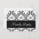 Placa RSVP de Convite para Casamento tema damasco Branco Preto. Personalize com suas informações.