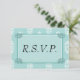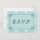 Um anúncio muito elegante e personalizado da RSVP de casamento em aqua/teal suave, parte do jogo de papelaria de casamento "Teal Damask", com uma cor damasco branca e ligeiramente magra, com ornamento teal.