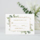 Este cartão RSVP de casamento apresenta cor d'água, eucalipto verde, folhas verdes e um quadro retangular dourado. Para personalização mais avançada deste design, clique no link "Personalizar mais". Itens correspondentes também estão disponíveis