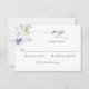Cartão RSVP de casamento elegante com uma bela cor d'água verde e detalhes florais azuis e brancos e elementos elegantes e modernos de caligrafia escrita manual. Simples e na moda. Volte com marinho azul. Também disponível em azul empoeirado ou branco com floral. O mesmo design também está disponível com opções de refeição, assim como no cartão postal. Parte de nossa coleção "Elegant Bliss" com uma variedade de convites coordenadores, inserções de cartões, cartões rsvp, acessórios de correio, salvamento de datas, cartas de agradecimento e placas de eventos e produtos.