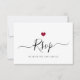 Elegante, mas minimalista, design rsvp de casamento com caligrafia sofisticada de guião emparelhada com um coração vermelho minimalista. Sinta-se livre para alterar o plano de fundo e a cor do texto em "personalizar mais". Encontre todos os produtos correspondentes na nossa coleção " Minimal Modern (Rosa) Dourada Heart Wedding Suite".