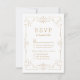 Vintage elegance ornamentado de espiral do quadro do design em cor dourada sobre fundo branco editável. Cor damasco com design monograma nas costas, moderna, elegante e elegante, perfeita para o casamento vintage, casamento de arte deco durante todo o ano. Cor de fundo editável para corresponder às cores do tema do casamento. Personalize o seu próprio cartão RSVP para o seu conjunto de convites para o casamento. Veja todas as peças correspondentes nesta coleção do "Dourado casamento Clássico Moderno" abaixo.
