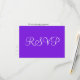Romântica violeta violeta violeta roxa com RSVP escrito em um roteiro elegante branco. Personalize a parte traseira das cartas em texto preto em fundo branco com os detalhes de sua ocasião especial. Designs originais por TamiraZDesign.