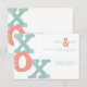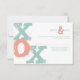 Este cartão de resposta de casamento moderno, cor-de-rosa e cor-de-rosa, verde-menta ou azul-lacrimogêneo ou espuma-do-mar, apresenta as letras XOX simbolizando os hungs e beijos para um anúncio de na moda chique, romântico e chic. O olhar ousado dá a este convite de casamento da primavera um sentimento divertido e artístico e também pode ser usado para convites para chás de panela ou chás de casamento e para renovações de votos e convites para festas de aniversário.
