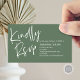 Apresentando nossa placa RSVP de Casamento de Elegância Moderna - a combinação perfeita de sofisticação e simplicidade. Projetada para o casal contemporâneo, esta placa RSVP apresenta um roteiro limpo e minimalista e um toque sutil de luxo para confirmar a presença de seus convidados. A design elegante complementa o tema do casamento verde da floresta, adicionando um toque de classe à sua suíte de papelaria. Assegure-se de que seu dia especial seja meticulosamente planejado com nosso elegante cartão RSVP moderno - um eterno de manutenção para você e seus convidados. Projetado por TeeshaDerrick