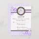 Este RSVP de chás de fraldas personalizável moderno apresenta flores roxas em um fundo de bolinhas roxo e branco. Personalize-o adicionando seus detalhes na fonte de sua escolha!