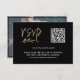 Crie uma declaração de na moda com esta placa RSVP de casamento preto e dourado. Com uma caligrafia elegante, um sotaque botânico em ouro falso simples e um conveniente código QR, essa design combina sofisticação e funcionalidade moderna. Perfeito para um casamento contemporâneo, ele fornece aos seus hóspedes uma maneira refinada e sem esforço de RSVP no estilo.