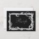 O cartão RSVP corresponde ao convite de casamento. Fundo preto com espiral de cinza. Um belo toque elegante para o seu casamento! Adicione seu texto personalizado.