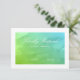 Um cartão de resposta RSVP elegante com um fundo azul branco e verde de cor d'água. Personalize facilmente com suas informações. Perfeito para um casamento ou Bat Mitzvah.