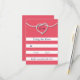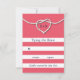 Uma corda branca amarrada num coração enfeita este RSVP num fundo de coral, fazer-o perfeito para o casamento náutico ou praia. Role para baixo para ver o resto da coleção de casamento e, se forem necessários itens adicionais, entre em contato conosco em prettyfancyinvites@gmail.com com sua solicitação