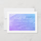 Um cartão de resposta RSVP elegante com um fundo azul branco e roxo. Personalize facilmente com suas informações. Perfeito para um casamento ou Bat Mitzvah.