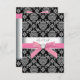 Cartões RSVP preto-rosados. Adicione seus detalhes à frente e atrás, simplesmente escolhendo o botão laranja "Personalizar!" para começar a adicionar detalhes do evento, estilo da fonte, tamanho da fonte e cor e texto. Observe que todos os designs de convite que você encontrará no Zazzle são gráficos impressos em estoque de papel plano sem joias reais, arcos, levantados, gravados em relevo ou peças ou peças adicionadas.