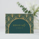 O convite formal perfeito para uma Véspera de ano novo, Natal ou Casamento no inverno Negra. Este design de arco apresenta um padrão de deco de arte dourada, criando um Excelente "Gatsby". Digite os detalhes do seu casamento para personalizar a aparência. Use a "Edit Using Design Tool" na parte inferior da guia personalizações para ajustar o design para atender às suas necessidades. RSVP mostrado na lista. O RSVP é de dois lados e inclui opções de refeições na parte traseira para os convidados preencherem e retornarem.
