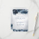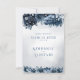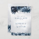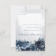 Apenas azul-poeirento, cinza e azul-marinho (sem cor verde ou outra) carta de devolução de correio RSVP, com marinho azul pintado a aquarelas e florais azuis-poeirentos com verde-eucalipto azul-prateado e salpicos de prata, e um fundo azul-aquarela empoeirado. O verso o nome do convidado, o número de convidados presentes e assistem alegremente ou declina lamentavelmente, sem escolha de refeição.