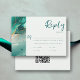 Um cartão rsvp de casamento com tema de praia com escolha de refeição e um modelo de código QR que apresenta uma cena de cor d'água pintada de uma praia e ondas com efeito de derrame de tinta dourada (o ouro é um efeito digital, não uma folha real!) e uma caligrafia moderna. Clássico e elegante, simples e moderno, é uma escolha adorável para um casamento de verão na praia, ou qualquer estação, para um casal moderno.