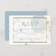 Cartão de Resposta RSVP de Casamento | Placas modernas e rústicas, azuis de denim claro e douradas. Um quadro dourado que é translúcido o suficiente para ver a aquarela por trás dele inclui os detalhes do rsvp escritos em uma fonte contemporânea. Escolha da Refeição. Design criado para o BarefootBride™ por © WhimsicalArtwork™ Personalize texto, estilo de letra, cor e tamanho. Criamos que esta modelo é para facilitar a personalização com suas próprias informações. Esta é parte de um Conjunto de Papelaria de Casamento com casamento, chá de fraldas e outros artigos de papelaria.
