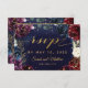 Uma montagem de peões vermelhos, roxos e azuis marinhos, enfeitados com contornos de ouro brilhantes contra uma canvas azul-marinho escura e rica com lascas de ouro, define o tom para este convite de casamento árduo RSVP com três opções de refeição. Um roteiro vivo em ouro anuncia seus detalhes e convida seus convidados para o seu casamento.