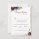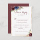 Estes cartões de escolha do cardápio de ouro geométrico são perfeitos para um casamento rústico. O design apresenta uma aquarela desenhada à mão, púrpura, marinho, pincel, burgundy, flores marinhos, folhas verdes e douradas que adornam uma elegante moldura geométrica.